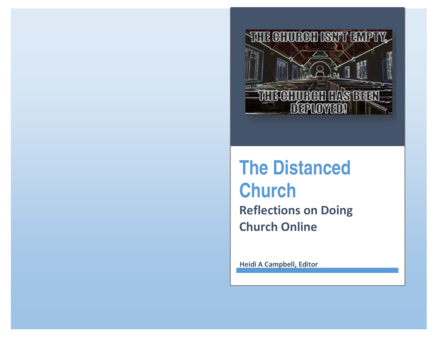 "In March/April 2020 most churches around the world have been forced to close their doors due to the need for social distancing and local lock-downs in order to fight off the spread of the COVID-19 virus. The result was traditional churches had to make an unplanned and swift transition towards technologically-driven forms of gathering. Many church leaders felt out of their comfort zone, while experimenting with doing church online. At the same time, scholars and theologians began studying this new trends in how churches perform worship online. “The Distanced Church” brings together religious leaders and scholar in conversation in this eBook where each group and offer reflection on lessons learned, answer questions that have been raised, and present insights gleaned from researching religion online. Contributors to this eBook come from ten different countries—within North America, Europe, and the Antipodes—and represent 12 different Christian denominations including Mainline, Catholic, and Nondenominational churches." (Publisher description)