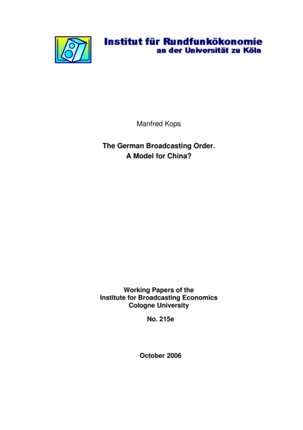 Series: Working Papers of the Institute for Broadcasting Economics, 215e