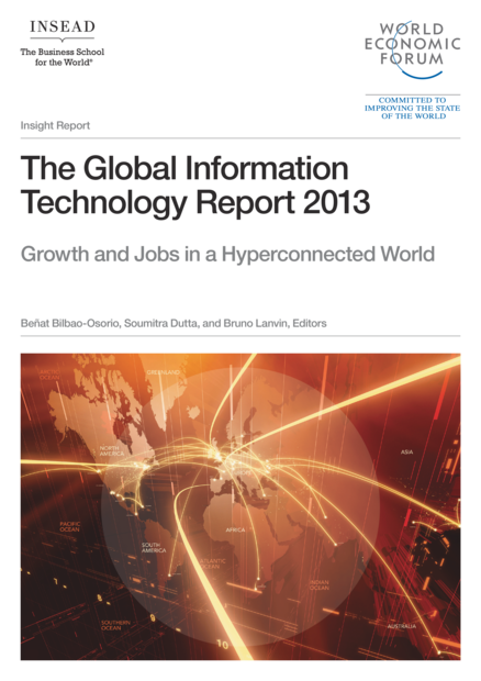 "Through the methodological framework of the Networked Readiness Index (NRI), the report measures the extent to which 144 economies, from both the developed and developing worlds, take advantage of ICTs and other new technologies to increase their growth and well-being. The NRI identifies the most relevant factors driving ICT readiness and impacts, providing policymakers, business leaders, and civil society at large with a useful tool for designing national strategies for increased networked readiness and for benchmarking their country’s performance against other relevant comparators. The Global Information Technology Report 2013 features the latest computation and rankings of the NRI, and in referring to this year’s theme, dives deeper into the connection between ICTs and economic growth and job creation. As in previous years, it also showcases a number of ICT development stories of particular interest. In addition, the report includes detailed profiles for the 144 economies covered this year together with data tables for each of the 54 indicators used in the computation of the NRI." (Back cover)