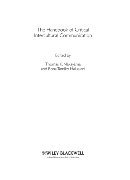 1 Critical intercultural communication studies: at a crossroads / Rona Tamiko Halualani; Thomas K. Nakayama, 1