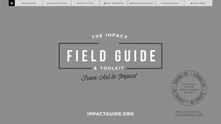 "This guide is about more than just tools and resources, it’s about building community. As with the process of evaluation, we saw an opportunity to learn about how impact happens and to track how films are catalysing social change. That’s the impetus behind the case studies that make up our Impact Library. We believe that sharing stories of change is inspiring and empowering. This guide is an opportunity for us to learn from each other, to pass on knowledge and equip others in the field." (Chapter 6.7: Wrapping Up)