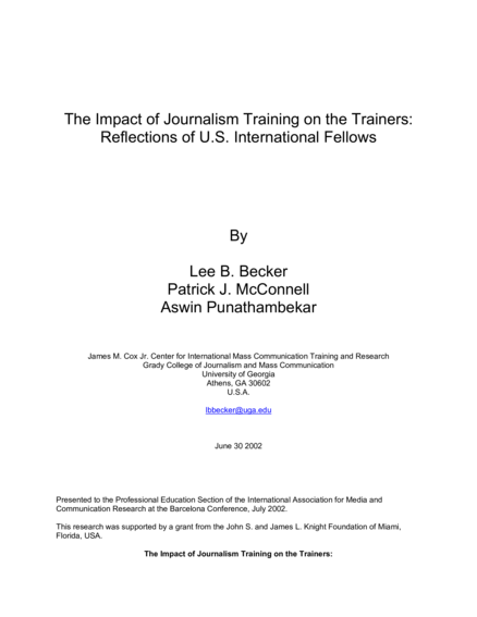 Athens, GA: University of Georgia, James Cox Center for International Mass Communication Training and Research (2002), 31 pp.