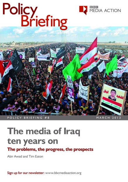 "This briefing argues that the Iraqi media landscape of 2013 may not be the free, plural and professional fourth estate that many in the West had envisaged in 2003 but that it has real strengths – as well as weaknesses – which reflect the reality and complexity of modern Iraq. The seismic shift in attitudes that the Iraqi media was asked to embrace in the reconstruction of the sector after Saddam Hussein’s fall was always likely to take time. It is suggested here that the prospects for Iraq’s media are less bleak than is often assumed." (Executive summary, page 4)