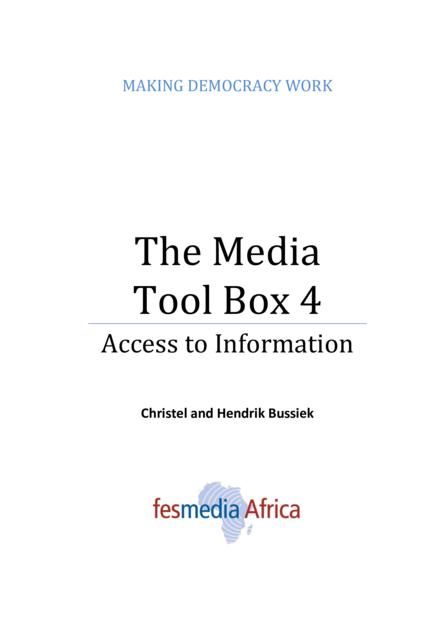 "This Tool Box is meant to help keep up the pressure on the authorities not just to pay lip service to the idea of free access to information but to implement it. It will describe in some more detail why such access is an essential citizen.s right and how it can be exercised efficiently, without compromising other rights or legitimate concerns in the process. It will also look at those pieces of existing legislation that need to be reviewed to ensure open and transparent government." (Page 6)