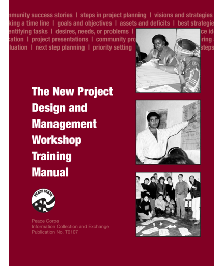 "In the project design and management (PDM) workshop, Volunteers and their Counterparts learn how to involve the community members in moving from their analysis to planning and implementing projects that meet their desires and needs. Some general goals of the PDM workshop for the Peace Corps include: 1. To reinforce the philosophy of community participation, and provide additional methodologies for involving community members in designing and implementing their own projects; 2. To enhance the Peace Corps Volunteers’ outreach capabilities; 3. To build host country national community development skills and strengthen the relationship between Volunteer and Counterpart." (Pages 1-2)