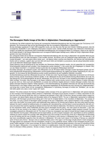 "This article analyzes the framing of Norwegian media coverage of the war against terror in Afghanistan with special emphasis on the coverage of the Norwegian military presence in Afghanistan. Norwegian forces became involved in a military intervention for the first time since the Second World War when ex-Yugoslavia was attacked in April 1999. At that time, Norway provided military support for the invasion and placed fighter planes and Norwegian pilots at the disposal of NATO. The war in Afghanistan represented an additional dimension, with Norwegian ground forces taking part in the hunt for al-Qaida fighters in the mountains of Afghanistan. The purpose of this article is to give a picture of Norwegian media coverage of the war in Afghanistan, with a special emphasis on the coverage of Norway's role in the conflict. As a small country with traditionally close relations to US, Norway had to balance, like many other small countries, between the need to uphold its traditional policy of complying with international law, and the desire to avoid provoking the USA with criticism and actions that could be regarded as disloyal and thus harm the bilateral relationship. This dilemma must also be seen as a problem for the mainstream media, which traditionally has been loyal to Norwegian security policy. Two main issues are discussed: 1. How was the start of the war covered in the media in October 2001? 2. In what context was the Norwegian military presence covered? The two newspapers analyzed are Aftenposten and VG. The choice of these two newspapers was made to include Norway's largest and potentially most influential morning paper (Aftenposten) and its largest tabloid, as well as largest newspaper (VG). Quantitative as well as qualitative methods are used to analyze the coverage. Both Aftenposten's and VG's coverage on the first day of the war in Afghanistan are dominated by pro-US framing and the use of Western sources. The pro-US framing is more obvious in Aftenposten than in VG. The editorial in VG was more unconditionally supportive than the editorial in Aftenposten. VG is also much clearer in its framing of Norway as a potential victim of future acts of terror. Norway's role as a potential military actor in the region is at this stage virtually absent in both newspapers. The legal aspects are mentioned in the two newspapers, though in a very superficial manner. Neither of the newspapers focuses on potential "hidden agendas" in their news coverage. No issue is made of the USA's potential global interests or the issue of controlling oil flows from the region. Aftenposten, in its coverage of an attack on a wedding party, treats this incident as "collateral damage" and in no way links it to Norway's military presence. Norway is simply a "loyal ally" receiving praise from the US for doing a "good job"." (Abstract)