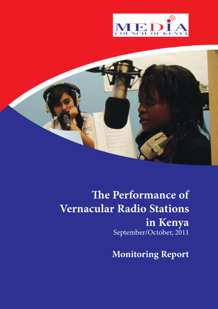 "The Media Council of Kenya (MCK), the statutory body established under the Media Act 2007 that regulates media and advances professionalism of the media in Kenya, monitored a set of ten vernacular radio stations in September/October 2011 in order to assess their current performance. The study looked at the adherence of the stations to the “Code of Conduct for the Practice of Journalism in Kenya” and the quality and diversity of their coverage. The monitoring was carried out during the confirmation of charges hearings at the International Criminal Court (ICC) in The Hague. A specific objective of the study was to analyze the ICC coverage in terms of accuracy, balance, fairness and conflict sensitivity. Key Findings: The radio stations scored highly on balance and fairness: 97% of the news reports showed no evidence of slanted reporting and 96% covered at least two viewpoints; only a few cases of hate speech were encountered. 99,5% of all radio items contained no hate speech; women were clearly underrepresented in the radio programmes. Women were central news subjects in less than 10% of the news items. Only a quarter of the presenters were female; the radio stations covered the ICC confirmation of charges hearings mainly in their news bulletins. Only a few talk-shows took up the topic. Several editors and managers described this editorial line as an attempt to avoid ethnic tension and incitement; the ICC coverage was predominantly perpetrator-centred. Only a few stories included the side of the victims of post-election violence. Most of the coverage focused on the immediate court procedures, only a few items provided in-depth background information about the cases." (Executive summary)
