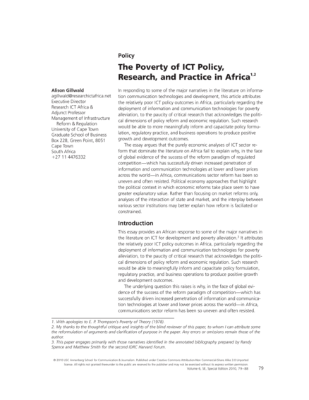 "In responding to some of the major narratives in the literature on information communication technologies and development, this article attributes the relatively poor ICT policy outcomes in Africa, particularly regarding the deployment of information and communication technologies for poverty alleviation, to the paucity of critical research that acknowledges the political dimensions of policy reform and economic regulation. Such research would be able to more meaningfully inform and capacitate policy formulation, regulatory practice, and business operations to produce positive growth and development outcomes. The essay argues that the purely economic analyses of ICT sector reform that dominate the literature on Africa fail to explain why, in the face of global evidence of the success of the reform paradigm of regulated competition—which has successfully driven increased penetration of information and communication technologies at lower and lower prices across the world—in Africa, communications sector reform has been so uneven and often resisted. Political economy approaches that highlight the political context in which economic reforms take place seem to have greater explanatory value. Rather than focusing on market reforms only, analyses of the interaction of state and market, and the interplay between various sector institutions may better explain how reform is faciliated or constrained." (Abstract)