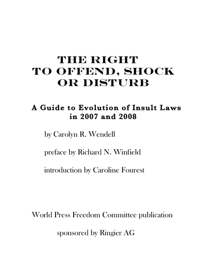 The Right to Offend, Shock or Disturb: A Guide to Evolution of Insult Laws in 2007 and 2008