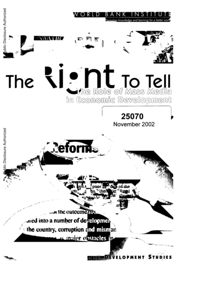 This book cites many examples that demonstrate the value of information provided by the media. Alexander Dyck and Luigi Zingales (chapter 7) discuss how the media can pressure corporate managers and directors to behave in ways that are socially acceptable, thereby avoiding actions that will result in censure and consumer boycotts. They also report that in Malaysia, a recent survey of institutional investors and equity analysts asked which factors were most important to them in considering corporate governance and the decision to invest in publicly listed corporations. Those surveyed gave more importance to the frequency and nature of public and press comments about companies than to a host of other factors considered key in the academic debate. However, the dissemination of credible information in a timely manner depends critically on how the media business is managed and regulated. The chapters in this book document evidence on media performance and regulations in countries around the world and highlight what type of public policies and economic conditions might hinder the media in supporting economic development in poor countries." (Pages 1-2)