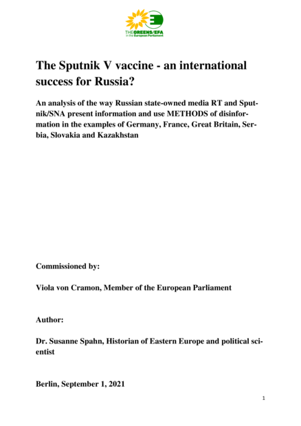 "This analysis examines the methods of disinformation being used to prove Russia's scientific lead, while portraying Western compet-itors in a very negative light. Sputnik V is an instrument of "soft power" through which Russia is trying to gain influence worldwide. In order to evaluate how successful the Russian infor-mation policy was, this analysis examines the perception of the benefits of Sputnik V in six different countries. In early 2021, Kazakhstan’s and Serbia’s relations to Russia were positively affected. Similar opportunities would have existed for Germany and Slovakia, since both governments were very willing to cooperate with Russia. In the case of Germany, however, this opportunity was lost due to a lack of cooperation and transparency on Russia’s part. In Slovakia, the government crisis over the use of Sputnik V has had a detrimental effect. For France and Great Britain, neither an improvement of the epidemiological situation through the Russian vaccine nor a success of the overall Sputnik V campaign are expected. This analysis is based on 130 news reports from the Russian state-owned media RT and Sputnik, the international press and the Russian independent press." (Summary)