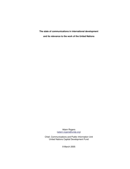 "In this study, the researcher examined the development of the various theoretical frameworks that define the practice of development communication, and then reached out to the international development community through a survey to discover: a) whether an assumption that development communication is not sufficiently appreciated by decision and policy makers in development organizations is correct; and b) if it is, what possible reasons there could be for this. The researcher found that where this assumption is correct, possible reasons for it could be a) a deficiency of empirical indicators on which policy makers can base their budgeting decisions; and/or b) a lack of effective communication between those that advocate for development communication and those at the top of the organizational hierarchies." (Abstract)