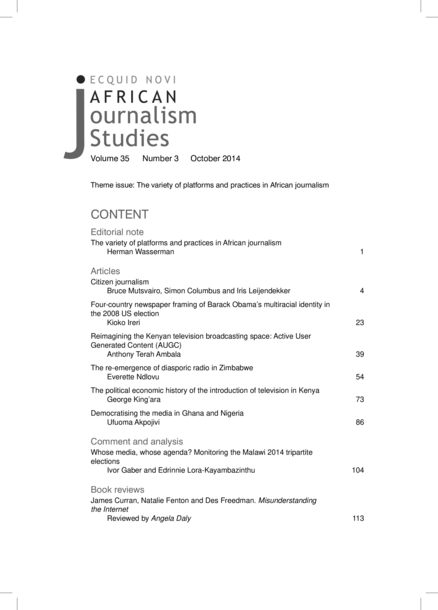 African Journalism Studies, volume 35, issue 3 (2014), pp. 1-103