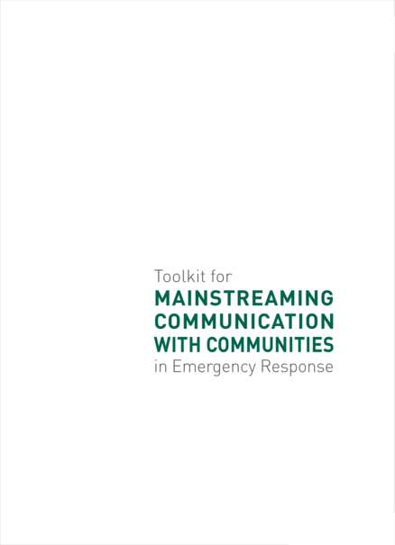 "In the context of humanitarian action, Communication with Communities (CwC) refers to activities where the exchange of information is used to save lives and mitigate risks of the disaster affected community. It also enables greater accountability in humanitarian organizations and facilitates the designing of a response according to the needs of the community [...] The overall objective of this toolkit is to guide policy actors and practitioners of national and international humanitarian agencies, donor communities, private sector entities, government ministries and departments to adapt CwC for the development of an appropriate disaster affected community-centered communication strategy throughout the project cycle and integrate it into policies, priorities and practices." (Page 4)