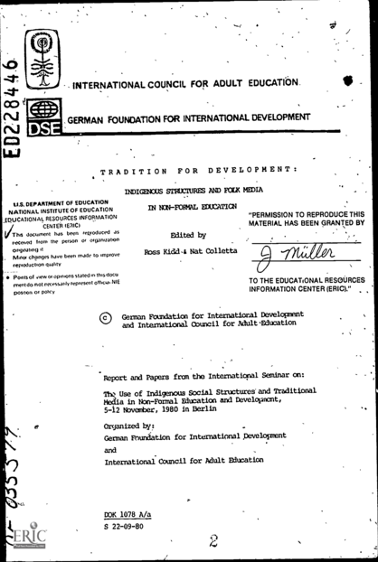 Tradition for Change: Indigenous Socio-Cultural Forms, as a Basis for Non-Formal Education and Development / Nat Colletta, 9