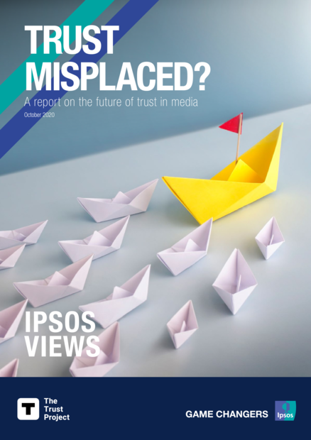 "This report is a collaboration between Ipsos and The Trust Project, a U.S.-based non-profit, international consortium of news organizations building standards of transparency. Its mission is to “amplify journalism’s commitment to transparency, accuracy, inclusion and fairness so that the public can make informed news choices.” The “Trust Indicators” it has pioneered are used by Google, Facebook and Bing to help surface trustworthy content in search and social. Ipsos led a two-stage variation of a future scenario-led workshop with members of The Trust Project. Together we identified and explored factors that will impact the future of trust and truth in journalism. These included: nationalist and populist sentiment; business model challenges for news media; technological changes; and, disinformation campaigns from nations and other bad actors. Ipsos then developed a two-part questionnaire that ran on two monthly waves of its Global Advisor survey to learn more about public opinion that underpins these topics. That data is presented throughout this report and can be found in detail on the Ipsos website." (Overview)