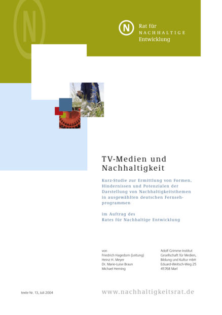 TV-Medien und Nachhaltigkeit: Kurz-Studie zur Ermittlung von Formen, Hindernissen und Potenzialen der Darstellung von Nachhaltigkeitsthemen in ausgewählten deutschen Fernsehprogrammen