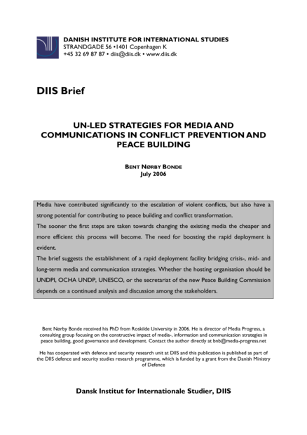 "Media have contributed significantly to the escalation of violent conflicts, but also have a strong potential for contributing to peace building and conflict transformation. The sooner the first steps are taken towards changing the existing media the cheaper and more efficient this process will become. The need for boosting the rapid deployment is evident. The brief suggests the establishment of a rapid deployment facility bridging crisis-, mid- and long-term media and communication strategies. Whether the hosting organisation should be UNDPI, OCHA UNDP, UNESCO, or the secretariat of the new Peace Building Commission depends on a continued analysis and discussion among the stakeholders." (Summary)