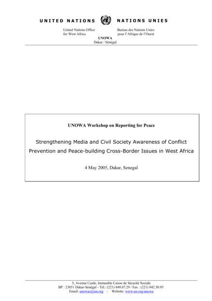 UNOWA Workshop on Reporting for Peace: Strengthening Media and Civil Society Awareness of Conflict Prevention and Peace-Building Cross-Border Issues in West Africa. 4th May 2005, Dakar, Senegal