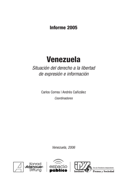 Caracas: Konrad-Adenauer-Stiftung (KAS);Espacio Público;Instituto Prensa y Sociedad (IPYS) (2006), 248 pp.