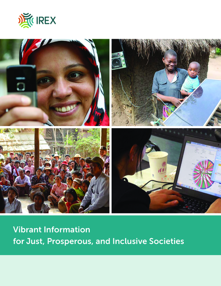 "The purpose of this document is to define IREX’s new approach to information with vibrant information systems. This will enable IREX to help partners and people generate, disseminate, consume, and use content that matters and take positive transformative action. The document provides the foundation for IREX program design, implementation, and technical products." (Introduction)