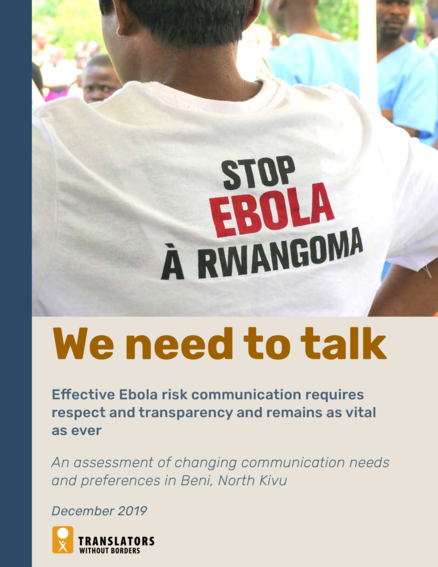 "Interviews with health communicators and residents in September 2019 found that language barriers impede understanding of critical information on Ebola. Information in French and Swahili does not reach everyone. People misunderstand seemingly simple medical words in French. Swahili is best understood in the version local to Beni, while women and older people in the Beni area need information in localized Nande. Military personnel and their families need information in Lingala. To effectively communicate about Ebola, information needs to be relayed in all four languages. The use of technical terminology presents its own language barrier. Key terms related to Ebola are in French and are not consistently translated. Health communicators themselves misunderstand them. Study participants explained that some words related to the outbreak are socially and culturally unacceptable. People consider those words harsh and offensive, especially words they associate with death. As a result, many people are reluctant to use those words. Health communicators replace them with their own euphemistic explanations. These alternatives can be inconsistent and vague, potentially leading to misunderstandings. Health communicators need support to translate Ebola-related terms in a socially acceptable and consistent way. The content of the information provided is also problematic. Current messages on Ebola offer only basic information and instructions. They do not provide information that will help people to better understand why and how the prevention and treatment of Ebola works. People’s questions have evolved with the dynamics of the outbreak and changes in the response strategy. Study participants asked for complex and transparent information in a language and style that is familiar to them. They want in-depth explanations that relate to the latest developments. Yet health communicators lack communication tools and training adapted to these developments, and struggle to provide clear and consistent answers. The resulting misunderstandings and contradictions confuse people, and the lack of detailed explanations creates further doubt and frustration." (Summary)