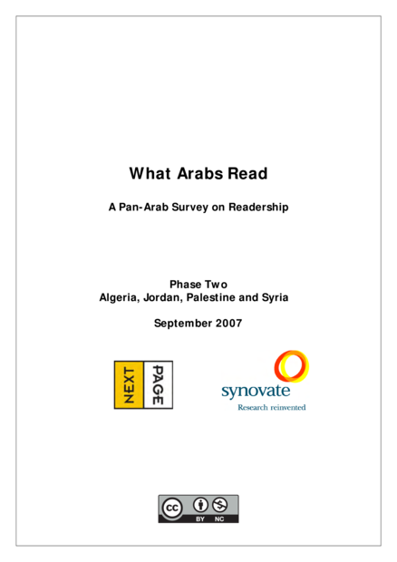 What Arabs Read: A Pan-Arab Survey on Readership. Phase 2: Algeria, Jordan, Palestine and Syria