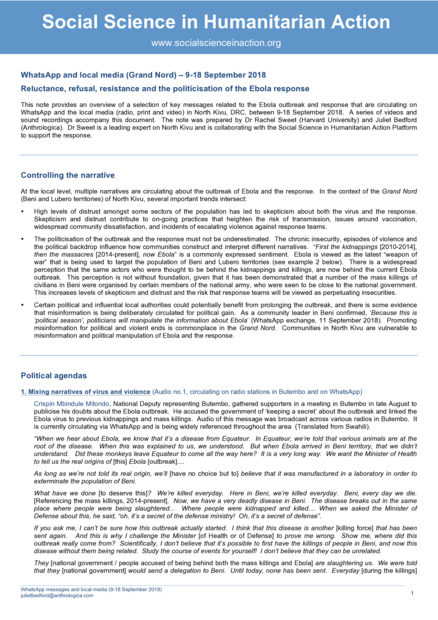 WhatsApp and Local Media (Grand Nord) – 9-18 September 2018: Reluctance, Refusal, Resistance and the Politicisation of the Ebola Response