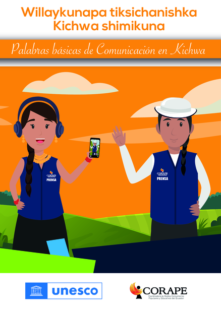 "CORAPE [...] presenta y pone a disposición de hablantes, usuarios y personas interesadas una compilación de términos de uso común en el idioma Kichwa Unificado de Ecuador, en temas conectados con la dinámica social de la vida diaria. Nuestro objetivo es promover la interculturalidad y el ejercicio efectivo de los derechos culturales a través de la revitalización de las lenguas ancestrales. La interpretación al idioma Kichwa Unificado, de términos en castellano de amplio uso en los ámbitos de la comunicación [...] abre espacios para la práctica significativa y la transmisión de las lenguas ancestrales." (Página 16)