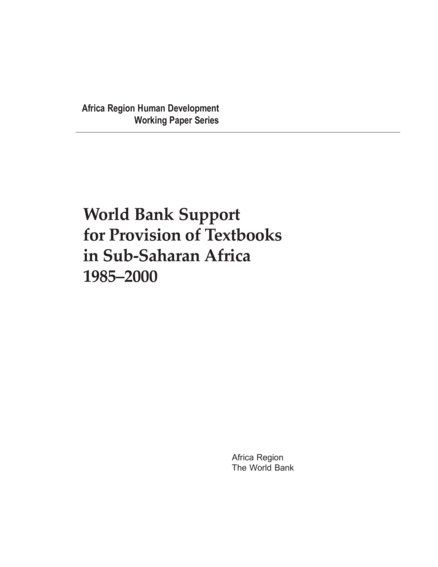 "To help countries establish systems that can ensure reliable provision of textbooks has been an important element of the World Bank's support for education development in Africa over the last two decades. Other development agencies, and African governments, have made similar investments. However, despite more than a quarter century of effort and massive investment many African students still lack adequate access to textbooks; or where they have been produced they are not always available in sufficient numbers. The main purpose of this comprehensive report is to explore why this is so, and to identify the challenges that need to be overcome to ensure that every student has adequate access to high quality textbooks. The report is based on a desk review of 89 Bank-financed education projects with textbooks components, and under implementation during the period 1985-2000 in 40 sub-Saharan African countries. It identifies problems and good practices at all stages of textbook provision, from authorship to classroom use, looks at World Bank policies and procedures that were modified during the review period, and examines progress that has been made during the period under review in key areas such as manuscript development, editing, production, distribution, and procurement. The report concludes with a section on the lessons learned for the period, and a series of recommendations how to improve the quality of textbooks, and to improve equity of access for all to good primary education." (Hans M. Zell, Publishing, Books & Reading in Sub-Saharan Africa, 3d ed. 2008, nr. 1887)