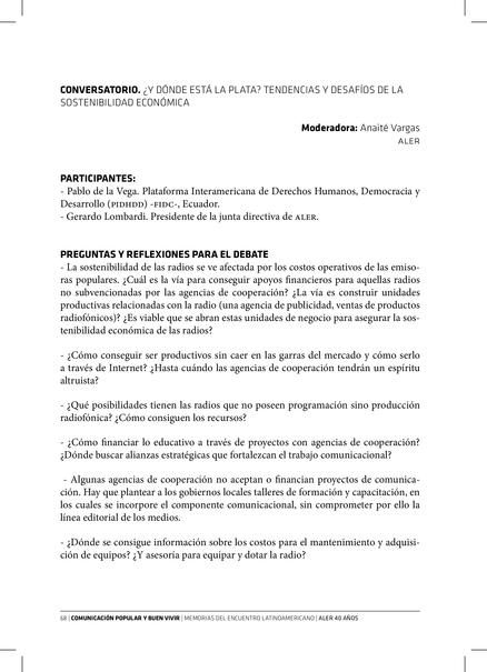 Quito: Asociación Latinoamericana de Educación Radiofónica (ALER);Abya-Yala (2013), pp. 68-72