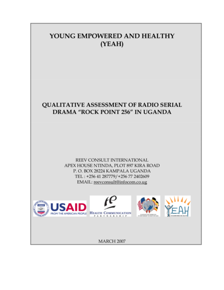 Young Empowered and Healthy (YEAH). Draft Report: Qualitative Assessment of Radio Serial Drama "Rock Point 256" in Uganda