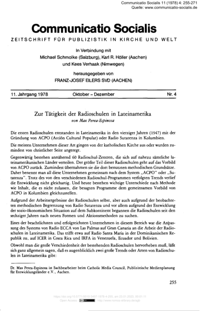 "Im Laufe der letzten Jahre haben sich in Lateinamerika zwei Hauptsysteme der Radioschularbeit entwickelt - das von Sutatenza, der allerersten in Lateinamerika gegründeten Radioschule, und das von Radio ECCA, das vor etwas mehr als zehn Jahren in Las Palmas, Gran Canaria, entstand. Die Sutatenza ACPO (Acción Cultural Popular) verfügt über ein regelmäßiges Bildungssystem, das Schulklassen unterrichtet und vor allem auf die Alphabetisierung ausgerichtet ist. Das ECCA-System dient dem einzelnen Schüler und bittet um regelmäßige finanzielle Beiträge zu den Kosten seiner Ausbildung. In diesem letztgenannten System werden die Ergebnisse häufig überprüft und die Bewertung der Fortschritte des einzelnen Schülers durch einen allgemeinen Tutor vorgenommen. Das Sutatenza-System funktioniert anders. Beispielsweise erhalten die Schüler die Sendung als Gruppe. Weitere Varianten werden vom Autor in diesem Artikel erklärt." (Zusammenfassung)