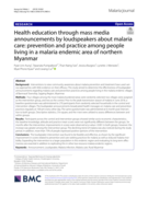 "Background: Interventions to raise community awareness about malaria prevention and treatment have used various approaches with little evidence on their efficacy. This study aimed to determine the effectiveness of loudspeaker announcements regarding malaria care and prevention practices among peopl