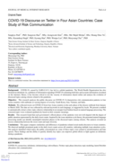 of information shared online and analyze the evolution of discussed topics among citizens related to the pandemic. This research analyzes the public discourse on COVID-19. It characterizes risk communication patterns in four Asian countries with outbreaks at varying degrees of severity: South Korea, Iran, Vietnam, and India. We collected tweets on COVID-19 from four Asian countries in the early phase of the disease outbreak from January to March 2020. The data set was collected by relevant keywords in each language, as suggested by locals. We present a method to automatically extract a time-topic cohesive relationship in an unsupervised fashion based on natural language processing. The extracted topics were evaluated qualitatively based on their semantic meanings. This research found that each government's official phases of the epidemic were not well aligned with the degree of public attention represented by the daily tweet counts. Inspired by the issue-attention cycle theory, the presented natural language processing model can identify meaningful transition phases in the discussed topics among citizens. The analysis revealed an inverse relationship between the tweet count and topic diversity. This paper compares similarities and differences of pandemic-related social media discourse in Asian countries. We observed multiple prominent peaks in the daily tweet counts across all countries, indicating multiple issue-attention cycles. Our analysis identified which topics the public concentrated on; some of these topics were related to misinformation and hate speech. These findings and the ability to quickly identify key topics can empower global efforts to fight against an infodemic during a pandemic." (Abstract)