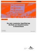 "Desinformation begleitet den russischen Angriffskrieg auf die Ukraine und erreicht auch ein deutsches Publikum. Sie dient der Stärkung russischer Propaganda und ist geeignet, die deutsche und europäische Entscheidungs- und Handlungsfähigkeit in Bezug auf den Krieg zu stören und negativ zu beein