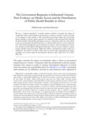 "We use a “natural experiment” in media markets in Benin to examine the impact of community radio on government responsiveness to citizens. Contrary to prior research on the impact of mass media, in this experiment government agents do not provide greater benefits to citizens whose exposure to c