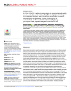 "To date, no study has evaluated the effect of a radio-only campaign on infant vaccination coverage, timeliness, and related morbidity in a low-income country. We implemented the "10+10+30" radio campaign involving broadcasting a weekly 10-minute radio drama series on vaccination, followed by a 10-m