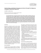 Publishing Programme (ILPP) is a government-sponsored initiative that aims to improve this situation. This article assesses the impact and sustainability of the ILPP as an attempt to represent the official languages more equally in the publishing industry. Our study, based on an analysis of documents and interviews, found that the national language and book policies have not been well implemented, which is a failure in terms of reaching constitutional ideals. Moreover, despite the ILPP being an attempt at creating language equality, the initiative seems not to be sustainable because it is reliant on external funding. The Department of Arts and Culture (DAC) is not willing to fund such a project on an ongoing basis, which puts the programme’s longevity at risk. As a result, the ILPP’s influence remains limited. The minority languages remain under-represented and this raises questions about whether there is in fact a viable market for books in all of the South African languages." (Abstract)