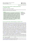 role of (social) media in shaping political polarization. Using quantitative and qualitative approaches, we find an increase in research over the past 10 years and consistently find that pro-attitudinal media exacerbates polarization. We find a hyperfocus on analyses of Twitter and American samples and a lack of research exploring ways (social) media can depolarize. Additionally, we find ideological and affective polarization are not clearly defined, nor consistently measured. Recommendations for future research are provided." (Abstract)