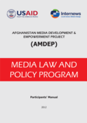 osen from various parts of Afghanistan will work with best practices and national and international media standards and principles. An Afghan-centric approach—necessary for strengthening national media and legal capacity—will be employed in addition to a comparative international approach. Topics included are Afghanistan’s media law; freedom of information; slander; defamation; libel; invasion of privacy; blasphemy; the interplay between Islam/religion and media law; and the interplay between Afghanistan’s constitutional law, criminal law and media law. Another element of the enabling environment is good management. Our hope is that this manual and the training program will contribute to improved media management by covering such subjects as transparency; improving legal protection for journalists; anti-trust rules; copyright law; contract law; licensing; trademarks; advertising; and intellectual property issues. In the area of telecommunications law, the project addresses topics such as the current state of Afghanistan’s telecom law; communication regulation and legislation; regulatory structures and regulatory models for communication; network interconnection and access; licensing; spectrum management; interconnection; access to networks, particularly in rural and underserved areas; improved business-friendly government regulation of the airwaves and licensing procedures; the regulatory regime for content delivered via SMS/IVR; the legal-regulatory framework for the Internet sector and for social media; electronic commerce; data protection and cyber-crime." (Foreward, pages ii-iii)