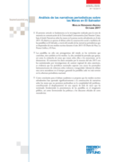 año 2015 con los suministrados por investigaciones de carácter regional de años anteriores, se evidencia que los periódicos nacionales superan con creces los promedios latinoamericanos de cobertura sobre violencia e inseguridad. Además de reflejar una curva ascendente en el tiempo, ganando las pandillas cada vez más terreno en la cobertura periodística nacional. Como conclusión para el debate académico se propone que los medios escritos salvadoreños han aportado significativamente a la construcción de narrativas sobre las maras que no permiten profundizar en la complejidad del problema, contribuyendo al desplazamiento de una especie de bola de nieve que ha terminado fortaleciendo la preeminencia de las pandillas en el imaginario público, así como favoreciendo las políticas y los discursos oficiales de corte manodurista." (Página 1)