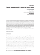 "This paper is the first attempt to look at the problem of community media in Central and Eastern Europe in general and present the specific problems of community media development in this region from an Eastern perspective. According to the Mapping Project of Community Media completed by the Commun