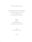 s through theoretical reviewing of two emerging concepts: “Communication for Development” and “Glocalization”. A comprehensive ground-breaking study, it aims at determining what role these media can play so as to build challenging and participative citizenship. It exposes the dangers threatening the sustainability of these tools of empowerment, on being deprived of viable institutional frameworks. The main objective is to identify similarities and differences, to discuss resulting issues and to investigate the feasibility of unifying criteria, formats and deinitions." (Abstract)