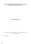 ever, this has not necessarily translated into advertising revenue, for example Community TV has a 9.5% reach but only yield an advertising spend less than 1%. Likewise, Community radio reaches 25%2 of the population but only receives 2% of the advertising spend. At face value this can be attributed to the profile of the community sector’s audience, that is, this sector does not deliver audiences that are attractive enough to advertisers to derive revenue that is comparable to commercial and public broadcasting services. However, factors contributing to the success of the community broadcasting sector are more complex. The study highlights the fact that the community broadcasting sector’s challenges emanate from a lack of corporate governance, management capacity and revenue diversification strategies. There is also a limited concerted institutional support, capacity building and funding strategies for community broadcasting in South Africa. Currently the Authority ‘s regulation of corporate governance, financial accountability and community participation is limited. Given the time and resources expended on addressing compliance challenges associated with this sector, it may be necessary for the Authority to consider Regulations or guidelines to address these shortcomings." (Executive summary)