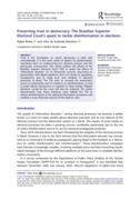 the effects of ‘information disorder’ on its democratic process, discussing its partnerships with digitalplatforms and civil society to guarantee transparency and to build trust and integrity in electoral processes in Brazil. The TSE aims to increase the electorate’s access to information and its resilience to disinformation, as well as build official mechanisms to respond to these threats. Related decisions issued by the court will also be analysed. The article demonstrates how these initiatives have helped the TSE to reduce disinformation in the electoral information ecosystem and enabled a more informed exercise of the right to vote." (Abstract)