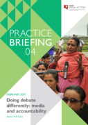 "This paper discusses a number of ways in which media plays a part in increasing accountability. It draws on quantitative and qualitative data from BBC Media Action’s work in nine countries. It finds that: media can influence accountability by empowering people, creating opportunities for construc