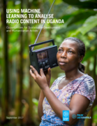 the creation of the Radio Content Analysis Tool and presents the lessons learned along the way. The report also details the results of several pilot studies that were conducted together with partners from the Government, UN agencies and academia to understand the validity and value of unfiltered public radio discussions for development [...] By sampling different indigenous languages, types of broadcasters, and locations within Uganda, the pilot studies assess the potential uses of radio talk across five topics: perceptions towards refugees in Uganda, the impact of small-scale disasters on livelihoods, perceptions around the delivery of healthcare services, understanding the spread of infectious diseases, and monitoring the effectiveness of awareness raising radio campaigns." (Executive summary)