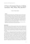national conferences, funded research projects, and publications addressing this topic, it remains a problematic area of practice. This paper provides a survey of recent media assistance evaluation practices through an analysis of 47 evaluation documents of programs and projects from 2002-2012, identifying trends in methodology choices, and critiquing the quality of the evidence enabled through different evaluation approaches. It finds clear patterns in how, when and by whom evaluations are undertaken, but finds that these practices rarely generate useful, insightful evaluations." (Abstract)