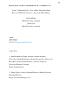 "This study draws from scholarship in framing theory and mediated collective memories for the analysis of the adoption of official narratives of US President Donald Trump’s Afghanistan policy as ready-made news frames by Afghanistan’s Tolo TV’s popular current affairs program as Tawde Khabare